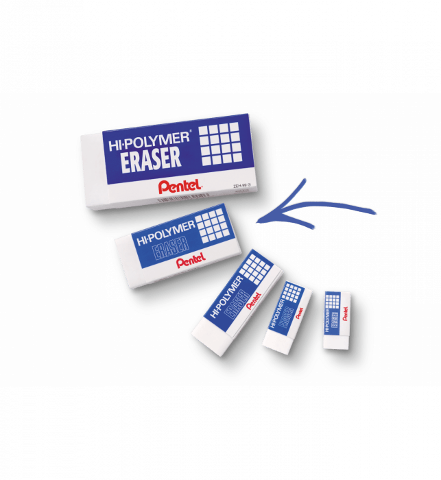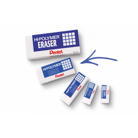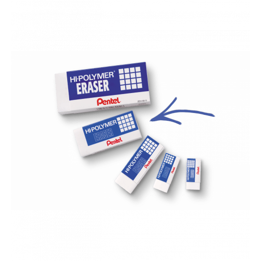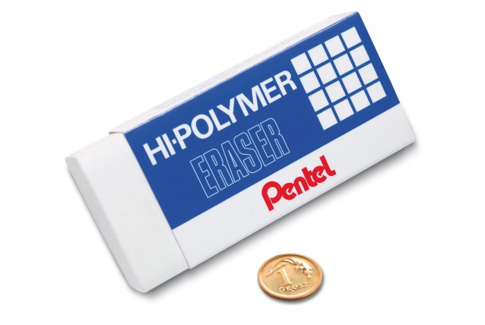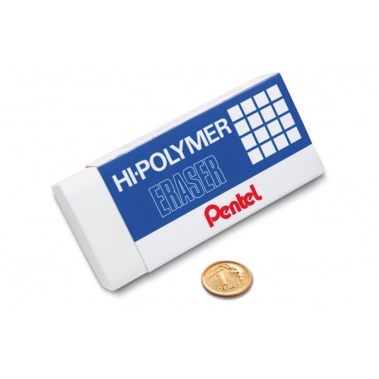 Bardzo popularna na całym świecie gumka ołówkowa Hi-Polymer. Wyjątkowo giętka i miękka, działa bez potrzeby mocnego dociskania do powierzchni. Nie narusza struktury papieru, pozostawia zeszyty, dokumenty oraz notatki w doskonałym stanie. Nie pęka, nie twardnieje, nie brudzi się. Pozostawia małą ilość ścinek. Nie zawiera szkodliwych substancji. Jest bezpieczna dla dzieci.