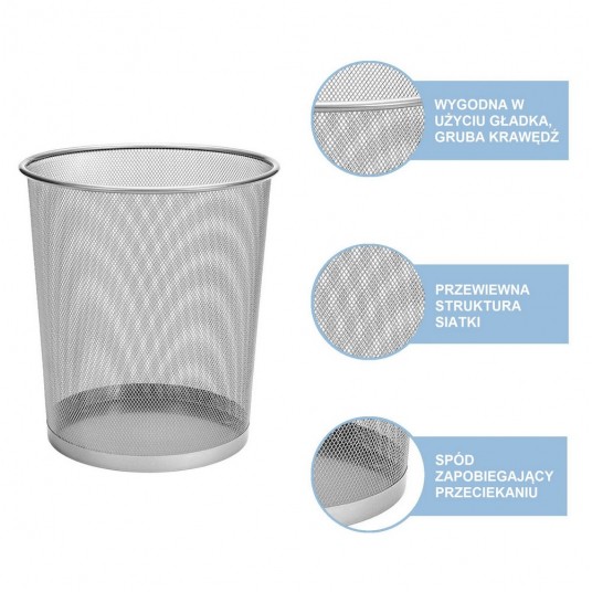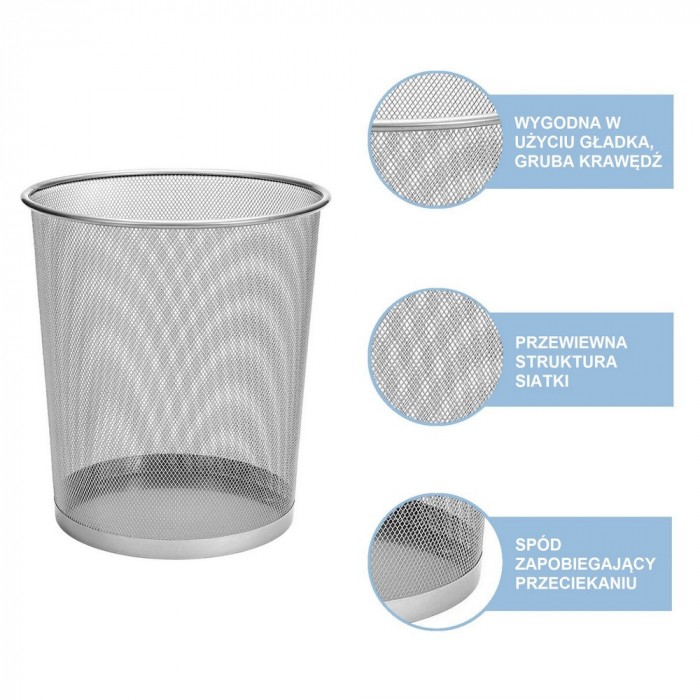 KOSZ METALOWA SIATKA D.RECT SREBRNY 12L