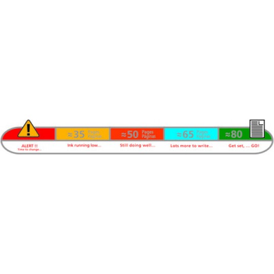 Gumowy uchwyt jest gwarancją wysokiego komfortu pisania, a wskaźnik zużycia tuszu pokazuje, jak wiele stron możemy jeszcze zapisać przed wyczerpaniem wkładu.
