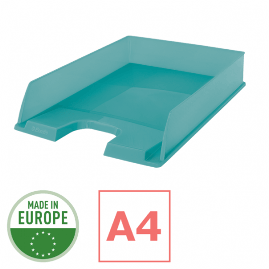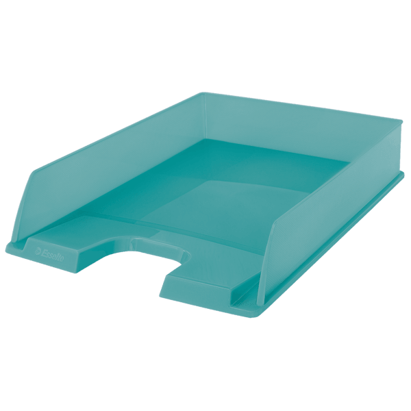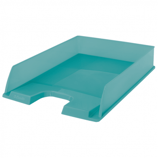 Półprzezroczysta półka na dokumenty wykonana z wysokiej jakości materiałów; na bocznych ściankach wykończona świeżym i nowoczesnym tłoczonym wzorem Colour'Breeze.