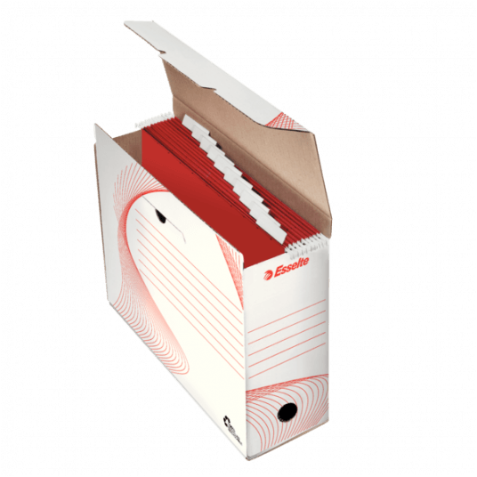 Wysokiej jakości pudła Esselte cieszą się uznaniem klientów od przeszło 25 lat. Każdego roku pracownicy reprezentujący wszystkie sektory gospodarki pakują do nich tony dokumentów. Mieści 10 teczek zawieszanych z zawartością. Format A4. Kolor biały.