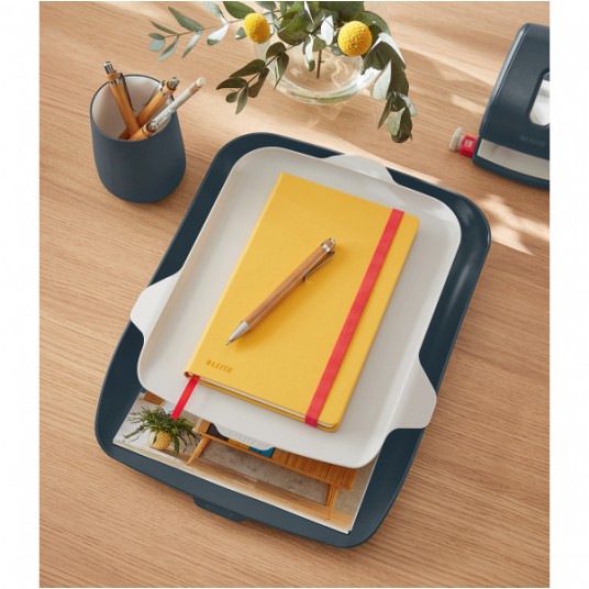 Półka na dokumenty z organizerem Dzięki Leitz Cosy poczujesz się jak w domu wszędzie tam, gdzie zaprowadzą Cię obowiązki zawodowe. Dzięki minimalistycznemu wzornictwu i zachęcającym kolorom możesz dodać stylu i elegancji do swojego miejsca pracy. Przytulna półka na dokumenty z organizerem na biurko nie tylko porządkuje ważne dokumenty, ale także służy do przechowywania tabletu, telefonu komórkowego i innych niezbędnych przedmiotów. Stanowi idealny dodatek do domu lub biura, zapewniając relaks i produktywność przez cały dzień. Półka na dokumenty Premium A4 z dodatkowym organizerem półka na dokumenty, półka, półki, półka na drobiazki, pólka do przechowywania Półka na dokumenty A4 z organizerem na biurko do przechowywania zarówno ważnych dokumentów, jak i tabletu, telefonu komórkowego lub innych akcesoriów Łącz półkę na dokumenty z dodatkową półką do przechowywania, która po prostu spoczywa na górze, zapewniając szybki dostęp do akcesoriów Nadaje się do przechowywania dokumentów, czasopism i folderów do formatu A4 Zapewnia łatwy dostęp do dokumentów nawet po ułożeniu wielu półek jedna na drugiej Opakowanie bez plastiku W kolekcji Leitz Cosy znajdziesz produkty łączące najwyższą jakość z komfortem, jaki zapewnia domowy styl.