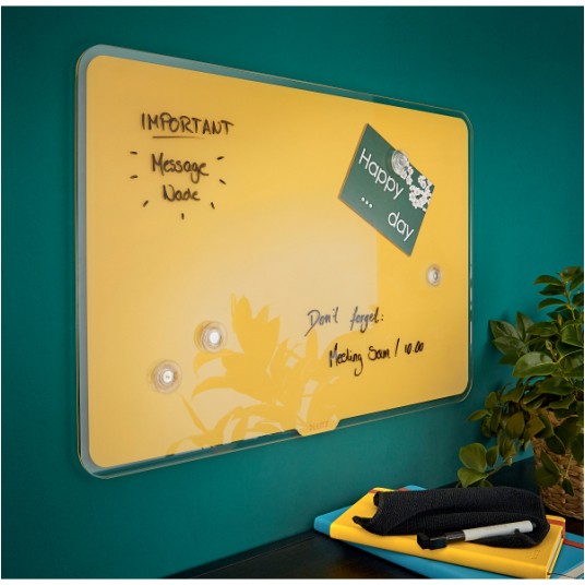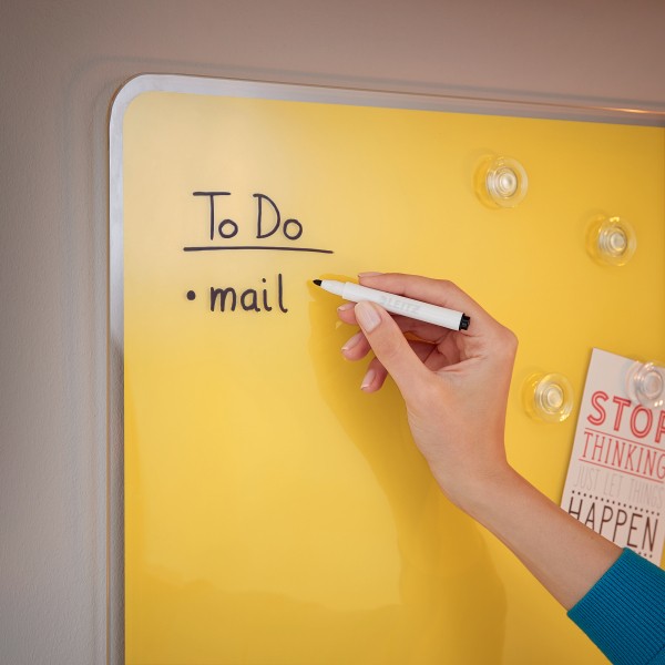 Napisz lub przyczep swoje notatki bezpośrednio na magnetycznej, szklanej powierzchni tablicy