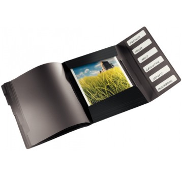 Wyraźne kolory na zewnątrz i minimalistyczny szary w środku. Przeznaczony do prezentacji i porządkowania dokumentów. Posiada 40 koszulek. Mieści 80 kartek. Format A4.