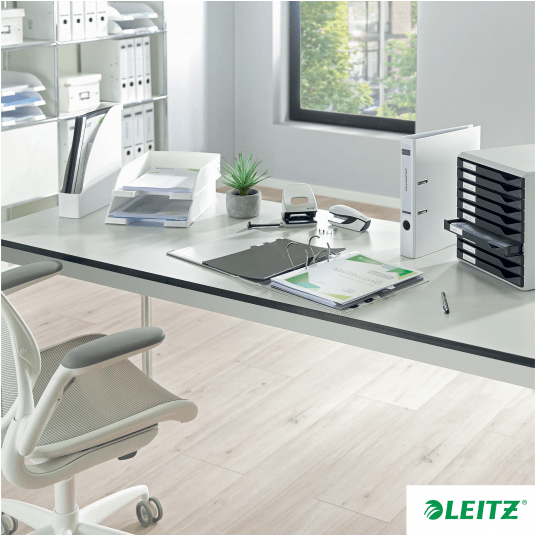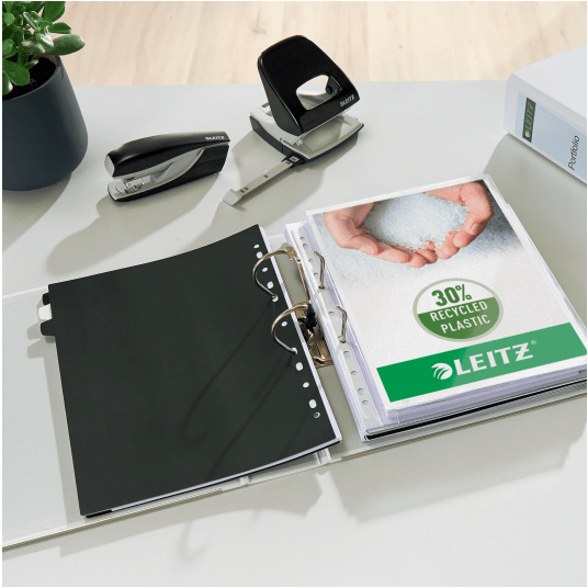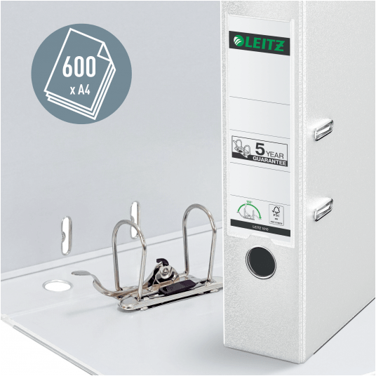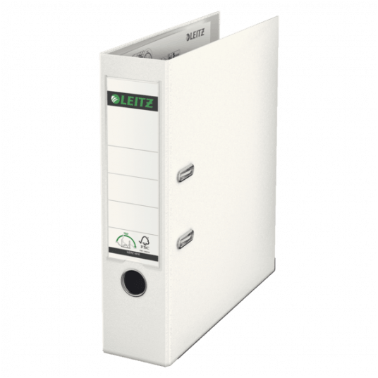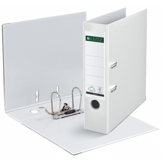 Segregator Leitz A4 z mech. 180°, szer. 80 mm, 30% PP z recyklingu, biały