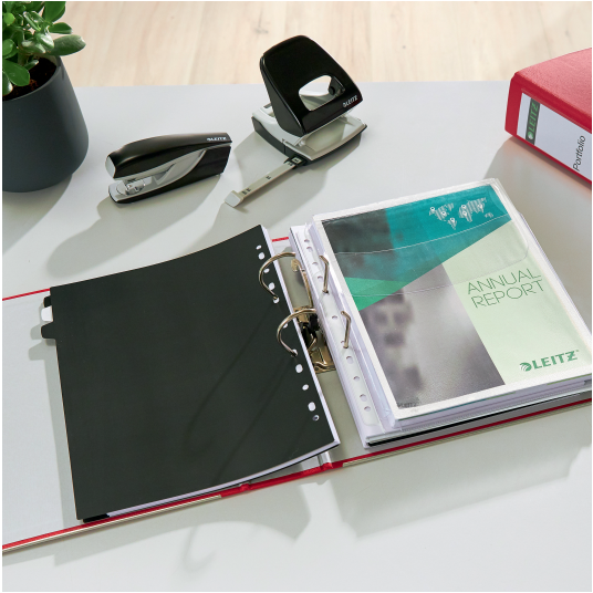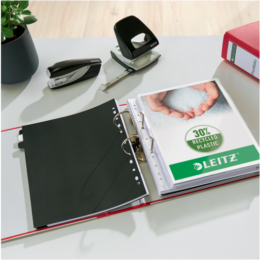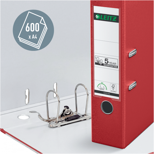 Segregator Leitz A4 z mech. 180°, szer. 80 mm, 30% PP z recyklingu, czerwony
