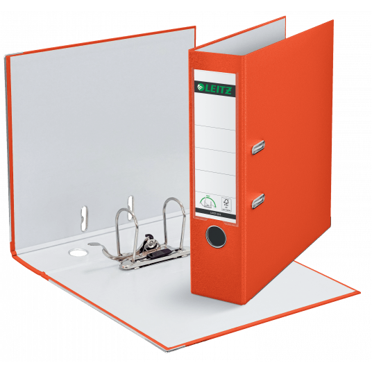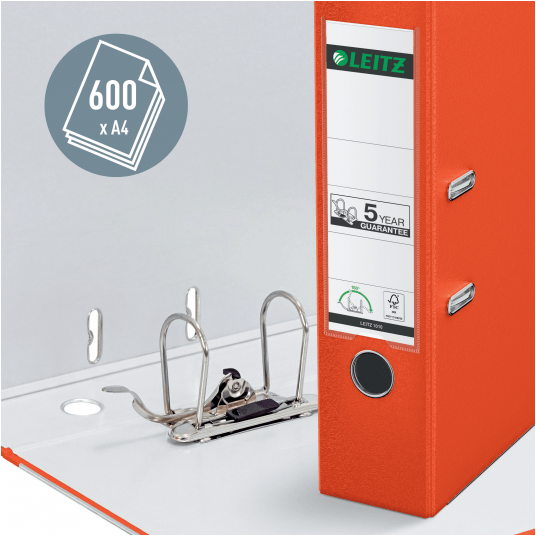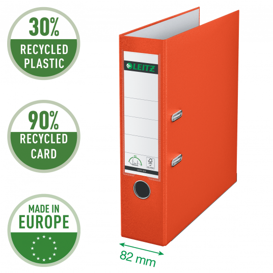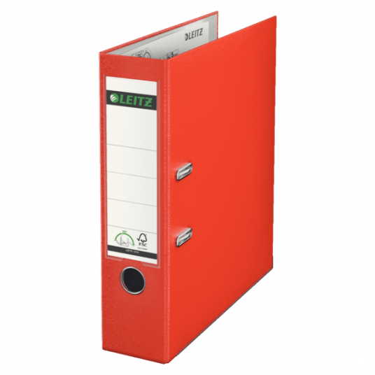 Segregator Leitz A4 z mech. 180°, szer. 80 mm, 30% PP z recyklingu, jasnoczerwony