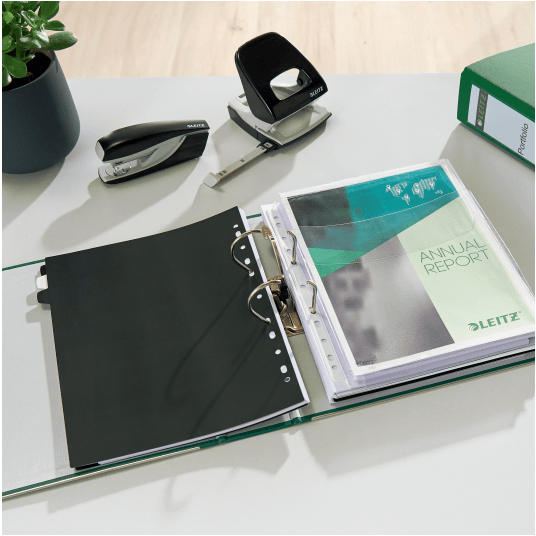 Dzięki zastosowaniu wytrzymałych materiałów oraz wysokiej klasy mechanizmu 180° zapewnia doskonałe walory użytkowe i funkcjonalne. Format A4, szerokość grzbietu 80 mm.