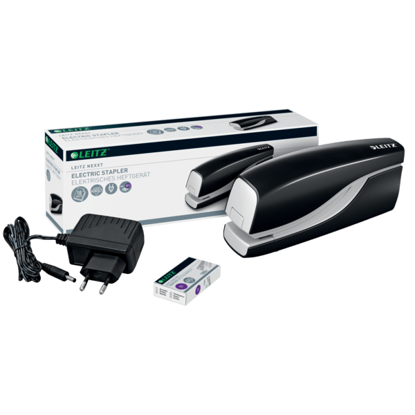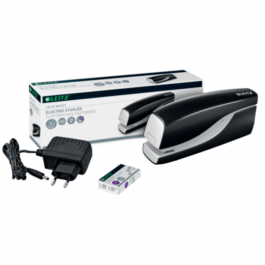 Bardzo wydajny. Łatwa obsługa jedną ręką. Stosowanie zszywek Leitz E1 przeznaczonych do zszywaczy elektrycznych zapewnia brak zacięć i perfekcyjne rezultaty zszywania za każdym razem. Zszywa do 10 kartek. Łatwa obsługa jedną ręką. W zestawie ze zszywkami.