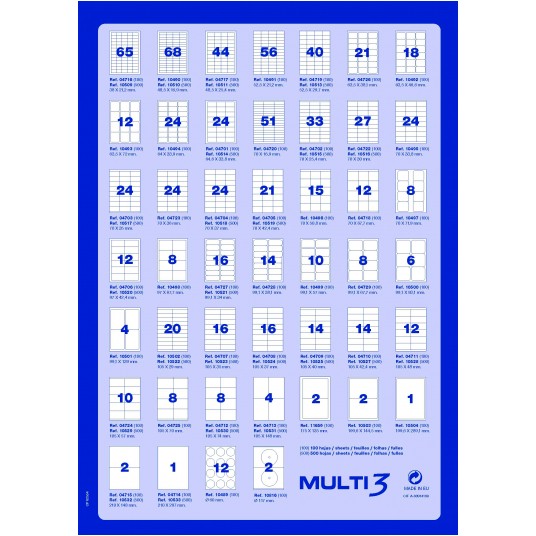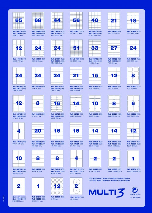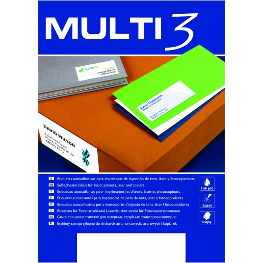 Etykiety MULTI3 można zaprojektować i wydrukować za pomocą bezpłatnego programu w języku polskim APLI SOFT PRO SE dostępny na apli.com lub pbspolska.eu. Ilośc arkuszy w opakowaniu: 100 arkuszy.