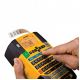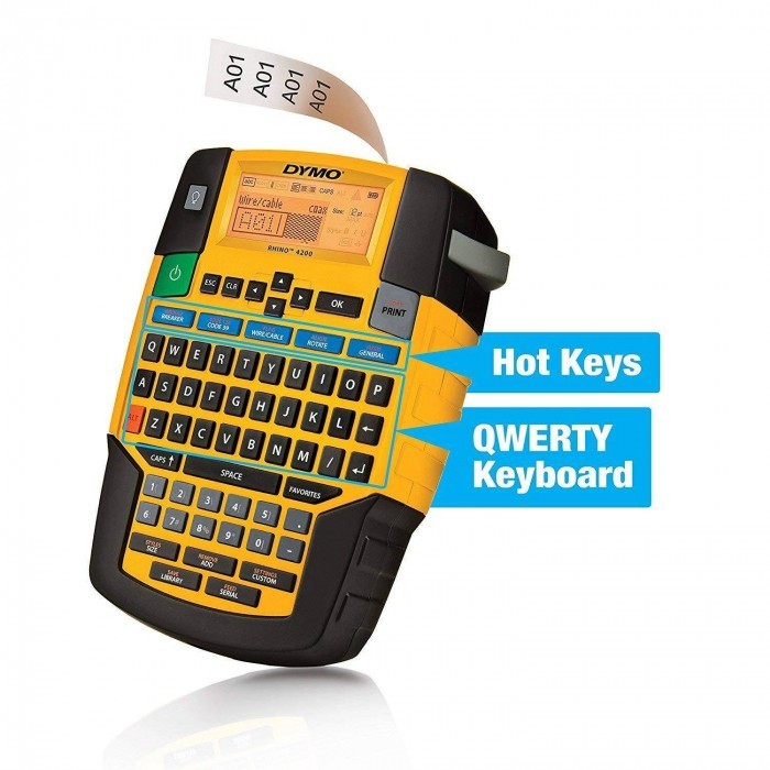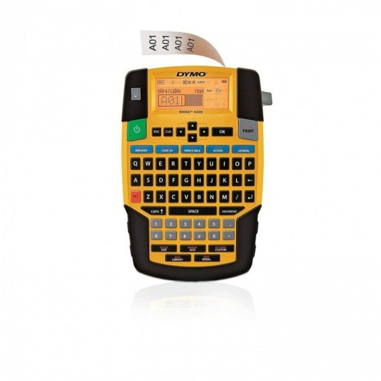 Używa łatwych w rozdzielaniu etykiet RHINO z silnym klejem, wykonanych z 5 materiałów.