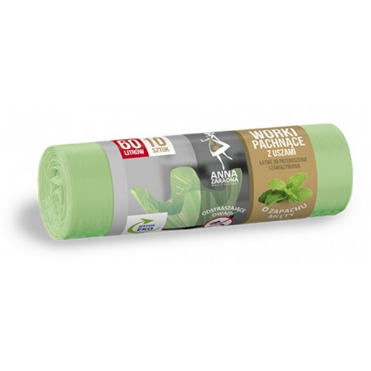 Worki na śmieci ANNA ZARADNA wytrzymałe z uszami 60 l zielone 10 sztuk z uszami
