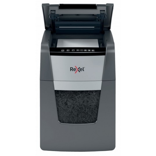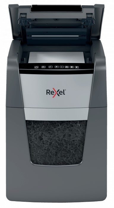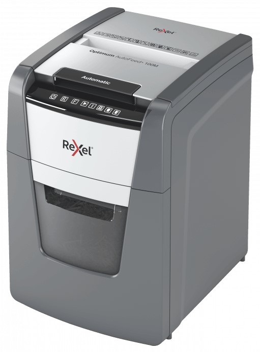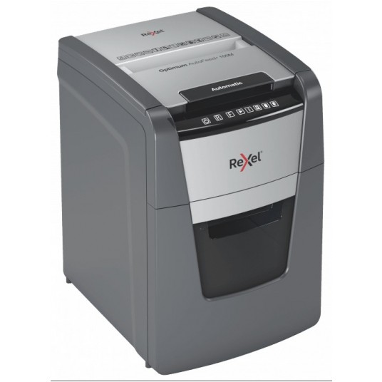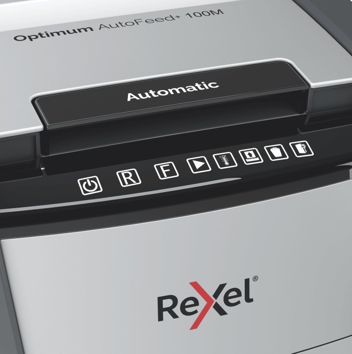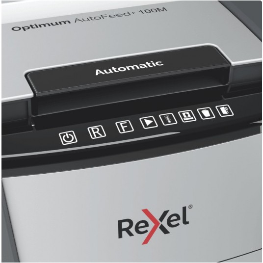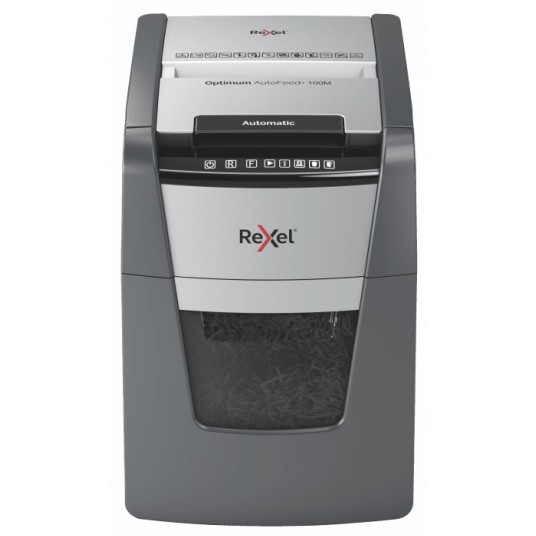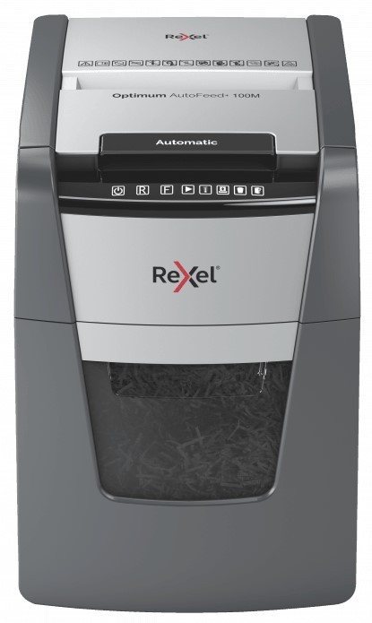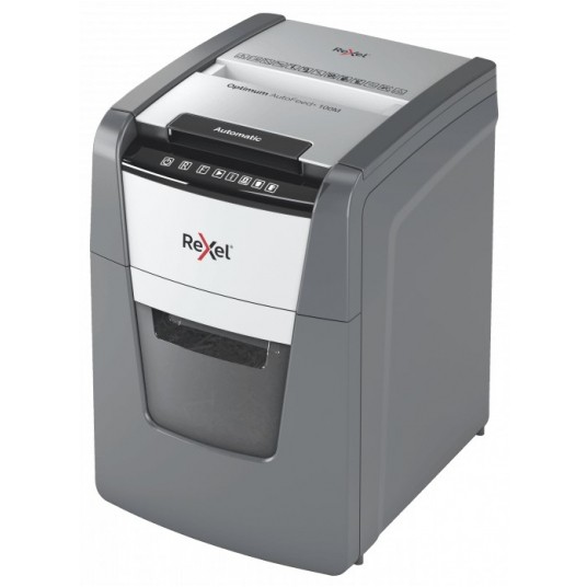 Niszczarka automatyczna do papieru Optimum AutoFeed+ 100M jednorazowo niszczy automatycznie do 100 kartek A4 (80 gsm), tnąc arkusze na mikrościnki (o wymiarach 2 x 15 mm), co zapewnia poziom bezpieczeństwa P-5.