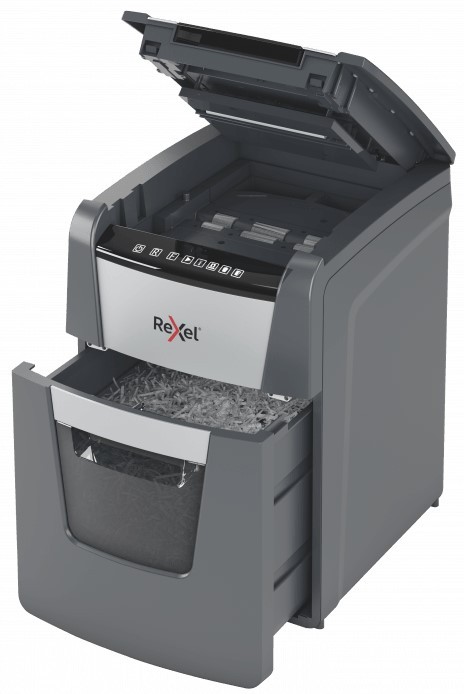 Wyposażona jest w automatyczny podajnik i 34-litrowy pojemnik na ścinki, co sprawia, że idealnie nadaje się do użytku biurowego.