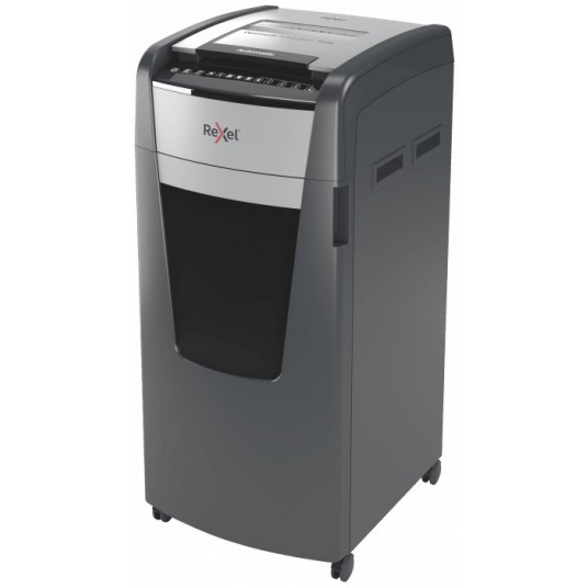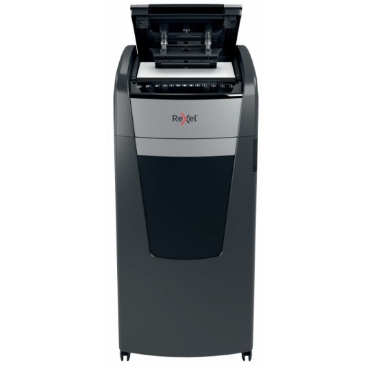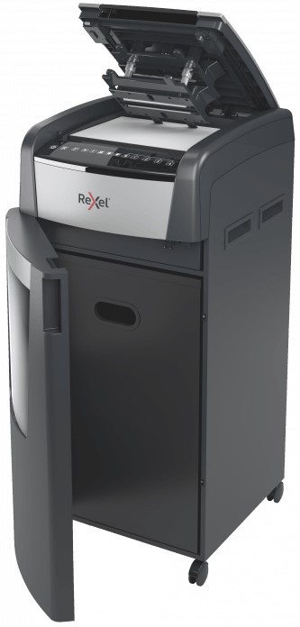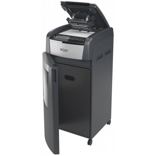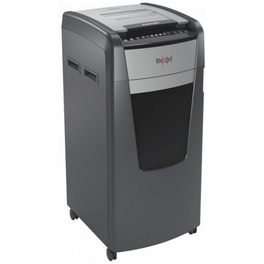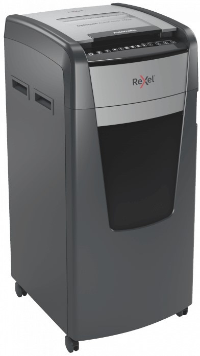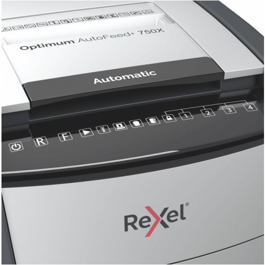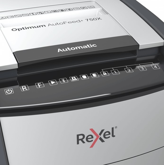 Niszczarka automatyczna do papieru Optimum AutoFeed+ 750X jednorazowo niszczy automatycznie do 750 kartek A4 (80 gsm), tnąc arkusze na konfetti (o wymiarach 4 x 30 mm), co zapewnia poziom bezpieczeństwa P-4.
