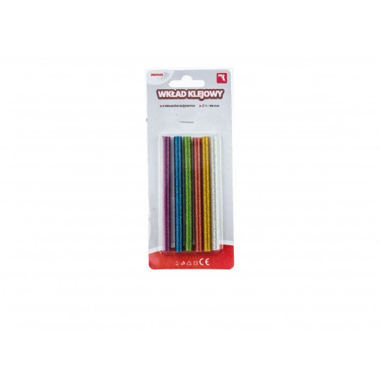 Zestaw kolorwych wkładów klejowych z brokatem 7 mm przeznaczonych do aplikacji na gorąco przy użyciu pistoletu, który jest idealny do pracy w domu, warsztacie i w garażu. W bardzo łatwy, szybki i precyzyjny sposób umożliwia łączenie elementów wykonanych z różnych materiałów. Polecany zarówno do drobnych napraw jak i do tworzenia przedmiotów dekoracyjnych. Dzięki szybkiemu wiązaniu praca nie wymaga dużego nakładu czasu. Klej po wyschnięciu jest bezbarwny i nie wyróżnia się na klejonej powierzchni.