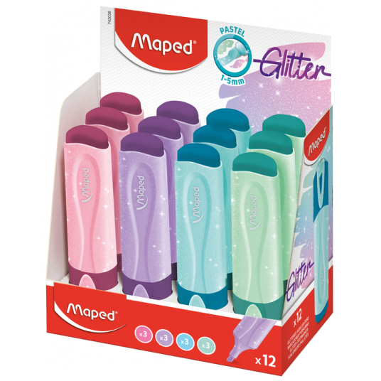 - zakreślacz z brokatem w tuszu i na obudowie - nadaje wyjatkowy, połyskujący efekt zakreślanym powierzchniom - klasyczny kształt obudowy - tusz nietoksyczny o wysokiej wydajności i trwałości, odporny na działanie światła - do wszystkich papierów standardowych, samokopiujących, fotokopii, termopapierów i papierów faksowych - pozostawione bez skuwki nie tracą swoich właściwości nawet po 4 godzinach - ścięta końcówka umożliwia pisanie cienką i grubą linią od 1 mm do 5 mm
