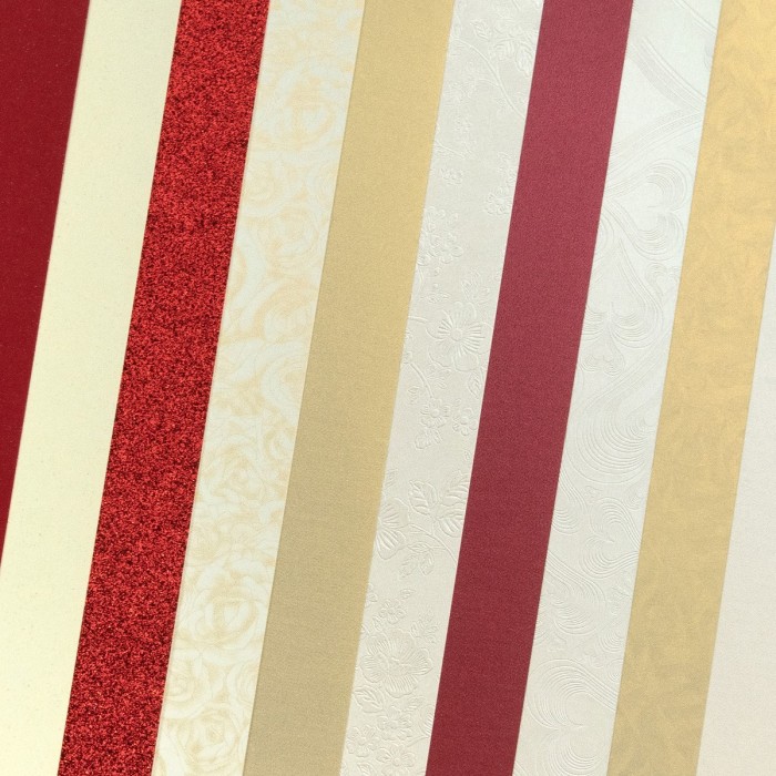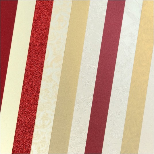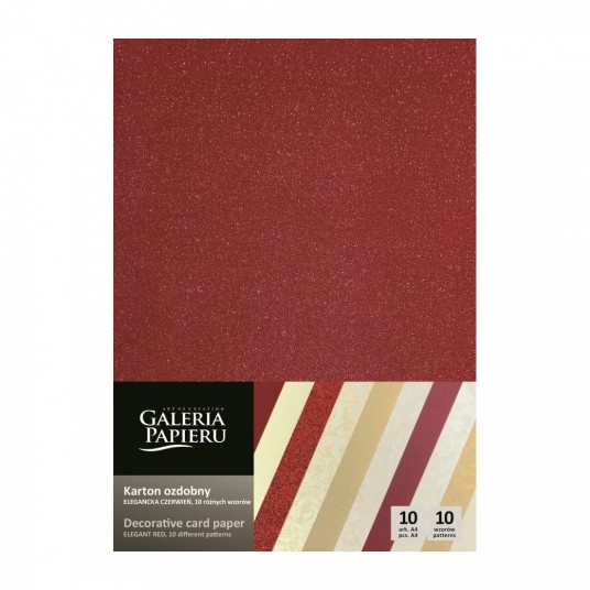 W zestawie 9 arkuszy metalizowanych w gramaturze 210-250g/m2 polecanych do drukarek laserowych, oraz 1 arkusz z wykończeniem brokatowym nie przeznaczonym do drukarek