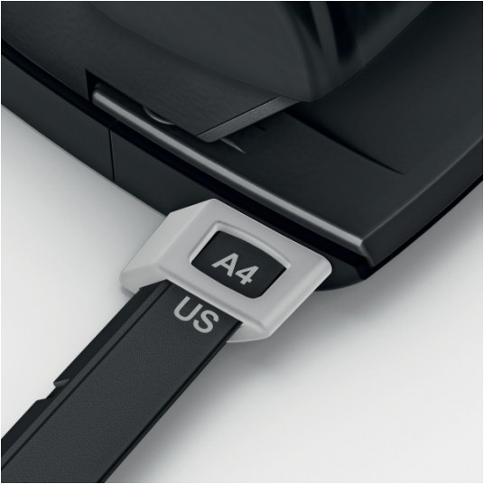 Wyraźne rozgraniczenia formatu i mocna prowadnica zapewniają doskonałe wyrównanie papieru.