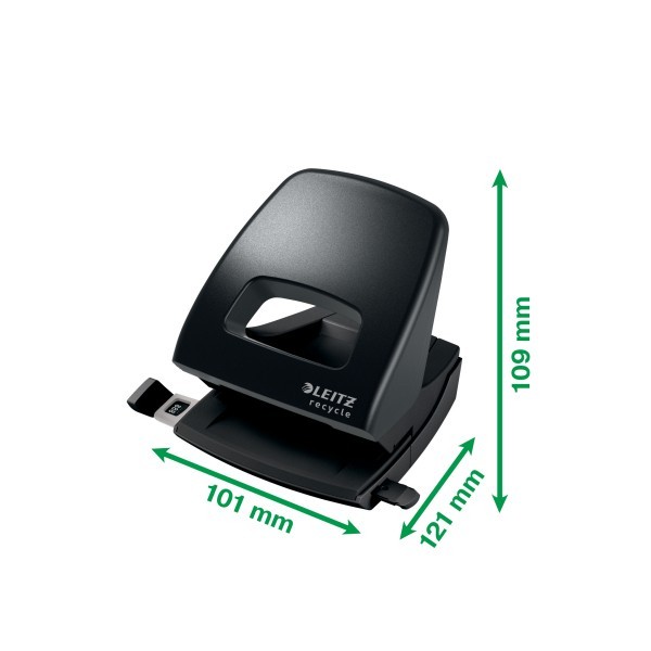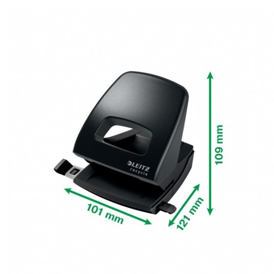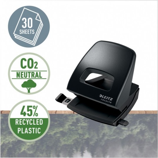 Dziurkacz NeXXt Leitz Recycle Przyciągający wzrok, wysokiej jakości dziurkacz wykonany z plastiku pochodzącego z recyklingu do codziennego użytku.