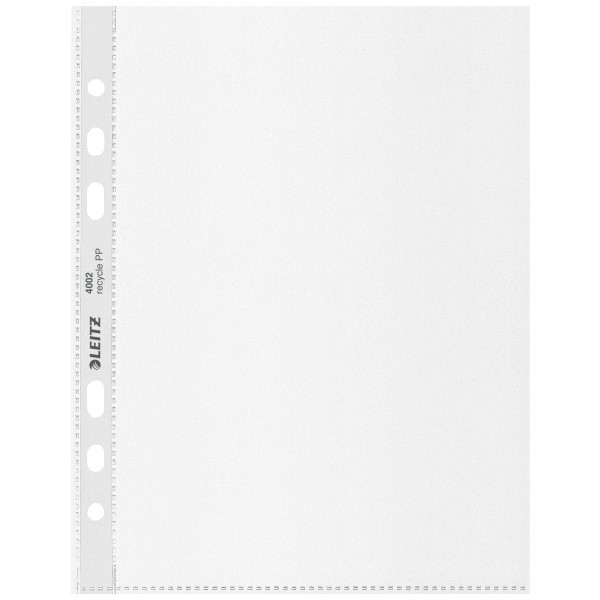 Uniwersalny, perforowany, wzmocniony pasek z 6 otworami do każdego segregatora; koszulka jest wykonana z przezroczystej folii pochodzącej z recyklingu.