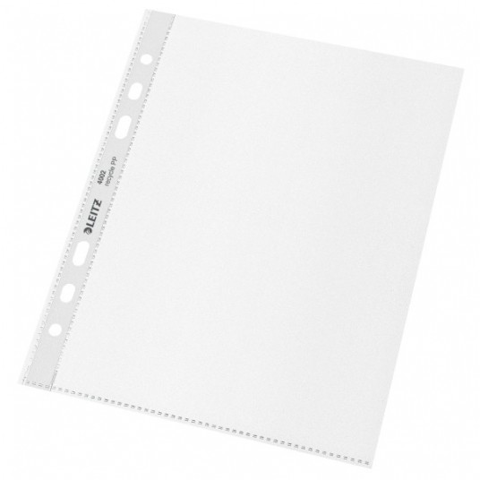 Uniwersalny, perforowany, wzmocniony pasek z 6 otworami do każdego segregatora; koszulka jest wykonana z przezroczystej folii pochodzącej z recyklingu.