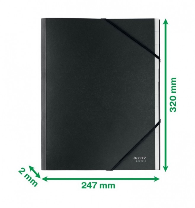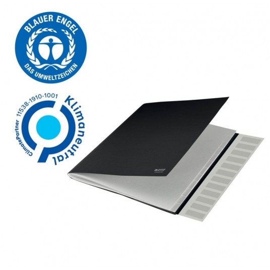 Najwyższej jakości teczka z 12 przekładkami wytowrzona z materiałów pochodzących z recyklingu, odpowiedni do formatu A4.