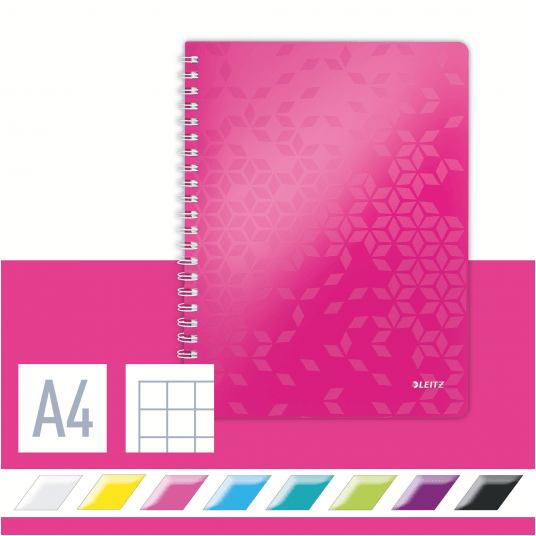 KOŁONOTATNIK LEITZ WOW, A4, W KRATKĘ, Z OKŁADKĄ Z PP KOLOR RÓŻOWY