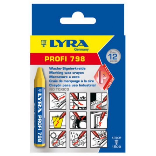 Profesjonalna kreda woskowa Lyra do oznaczeń na kamieniu, betonie, drewnie, metalu, glazurze. Kreda owinięta w papier, chroniący ręce przed zabrudzeniem. Cechuje się zwiększoną odpornością na złamania. Wymiary: - długość: 95 mm - średnica: 12 mm