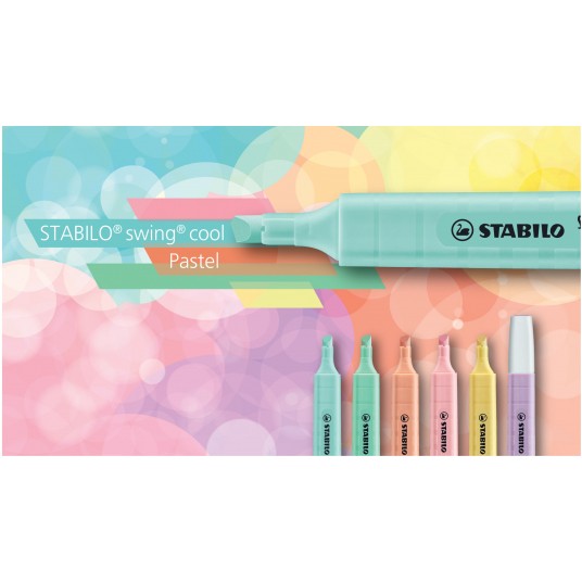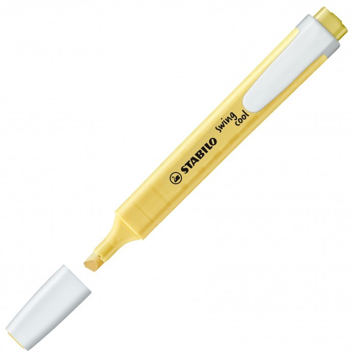 - STABILO swing cool Pastel - zakreślacz dla dzieci, młodzieży i osób które podróżują w modnych, pastelowych tonacjach - Kieszonkowy format zakreślacza z praktycznym klipsem do zaczepiania sprawia, że nie zajmuje dużo miejsca więc można go zawsze mieć przy sobie (w torbie, piórniku, kieszeni) - Technologia Anti-Dry-Out sprawia, że pozostawiony bez skuwki nawet prze 4 godziny nie zasycha - Grubość linii 1-4 mm - Dostępny w 6 pastelowych kolorach - Kolor pastelowy żółty