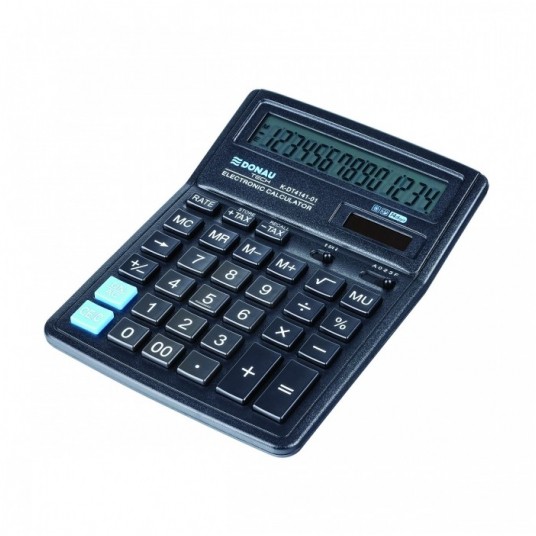 Kalkulator z 14-cyfrowym wyświetlaczem z zasilaniem bateryjno-solarnym.