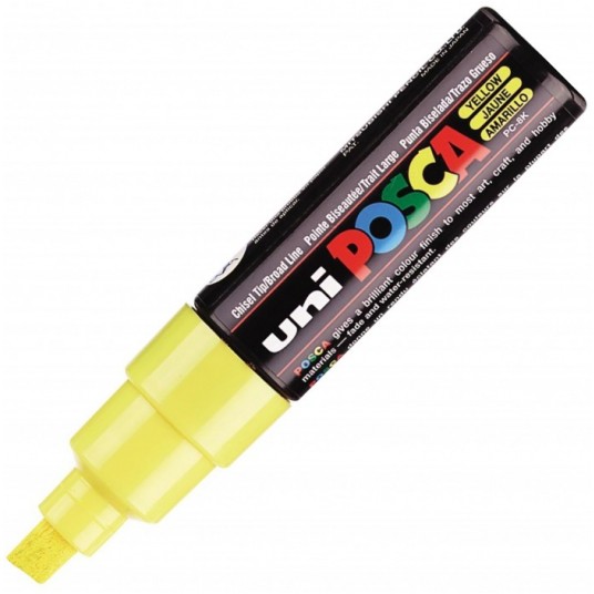 Marker z farbą Uni Posca PC-8K z szeroką ściętą końcówką umożliwia krycie dużych powierzchni i rysowanie czystych linii, a to wszystko w szerokiej gamie kolorów! Doskonały do wykonywania tła, street artu oraz oznaczania w twórczości i zastosowaniach profesjonalnych