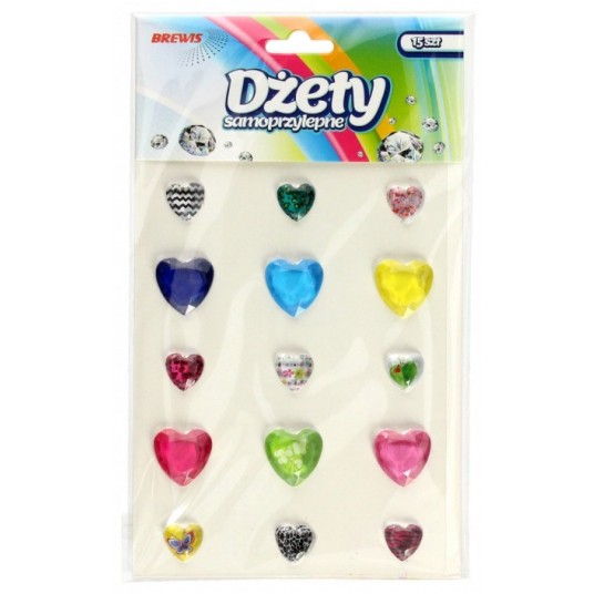 DŻETY SAMOPRZYLEPNE SERCA MIX 15 SZTUK DS51