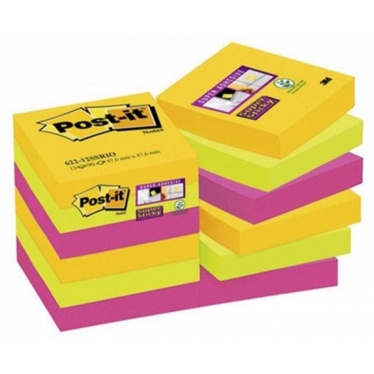 Opakowanie zawiera 12 bloczków po 90 karteczek w rozmiarze 47,6 x 47,6 mm w zjawiskowych kolorach miasta Rio de Janeiro.