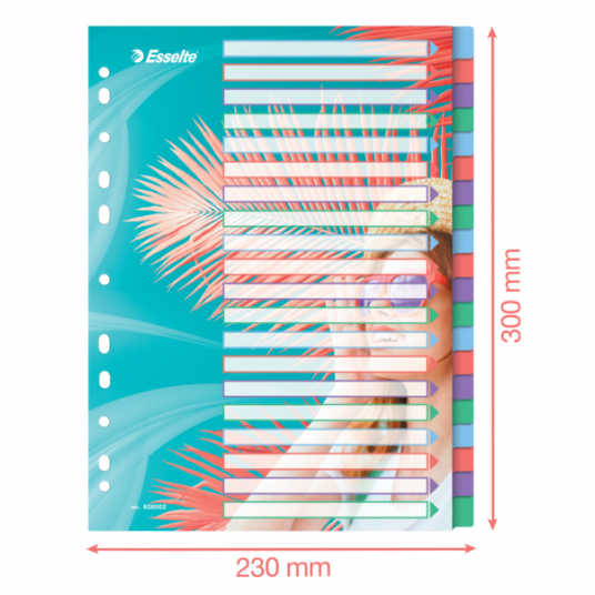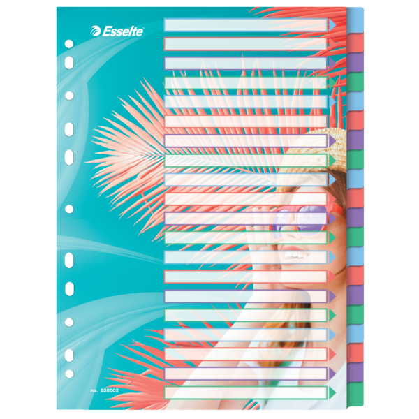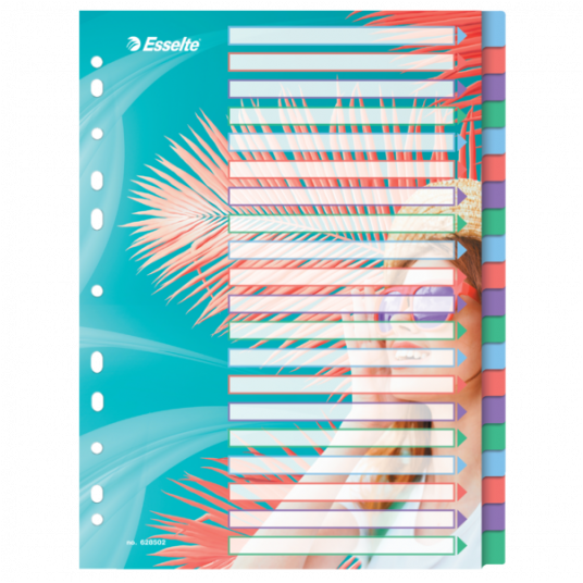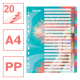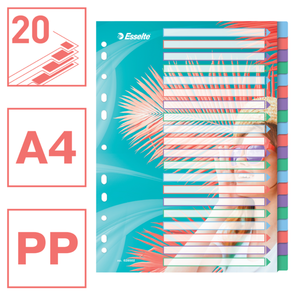 20 różnokolorowych, półprzezroczystych przekładek z indeksami, ułatwiających sortowanie i wyszukiwanie dokumentów.