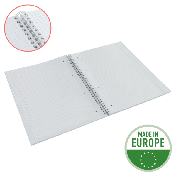 Zawiera 80 kartek (160 stron) papieru o gramaturze 80 g/m², posiadającego certyfikat FSC oraz zapewniającego wysoką nieprzezroczystość i pisanie bez rozmazywania; z nadrukiem w kratkę.