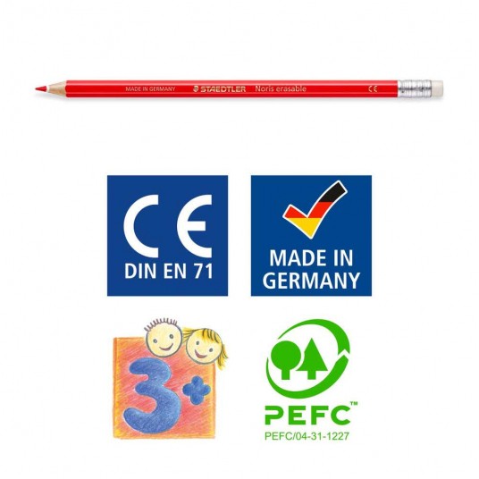 Zgodne z EN 71 – nie zawierają metali ciężkich ani ftalanów (związków dodawanych w celu zmiękczenia grafitu).