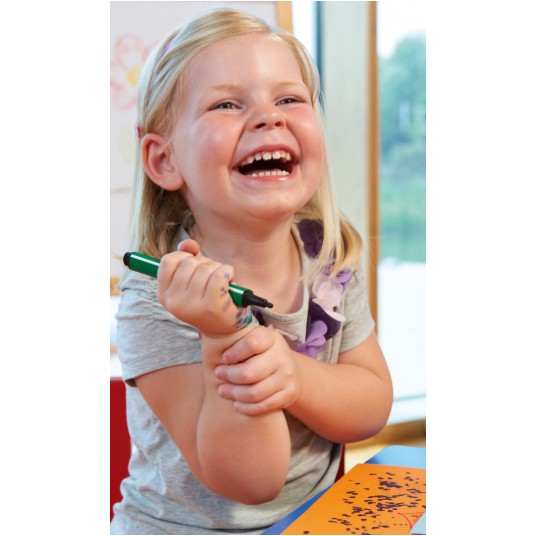 - łatwospieralny tusz umożliwiający zmywanie go z dłoni oraz ubrań.