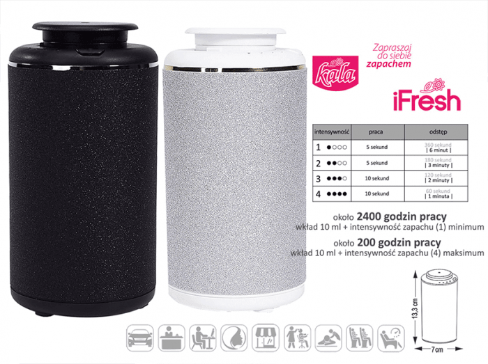 Esencja zapachu iFresh to skondensowana baza zapachowa przeznaczona do wykorzystania w dyfuzorach marki Kala iFresh oraz dyfuzorach innych firm. Dyfuzja to najlepszy sposób na aromatyzację przestrzeni a dzięki produktom Kala iFresh w pełni zautomatyzowany, wygodny i niedrogi.