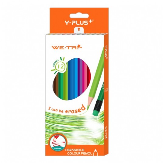 KREDKI OŁÓWKOWE BEZDRZEWNE, ŚCIERALNE, Z GUMKĄ 12 SZTUK