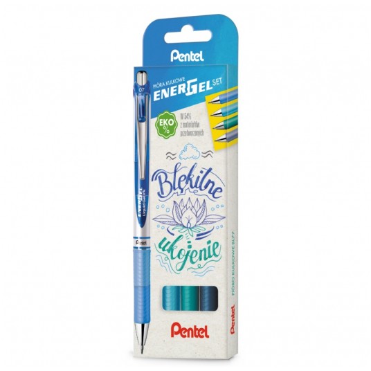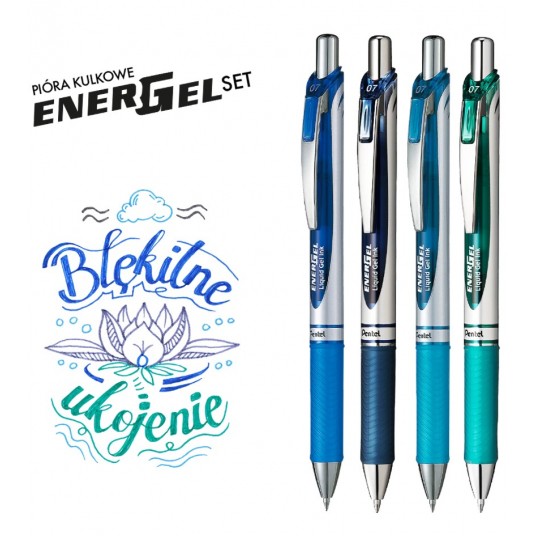 Zestaw PENTEL 4 piór kulkowych EnerGel serii BL77 błękitne ukojenie