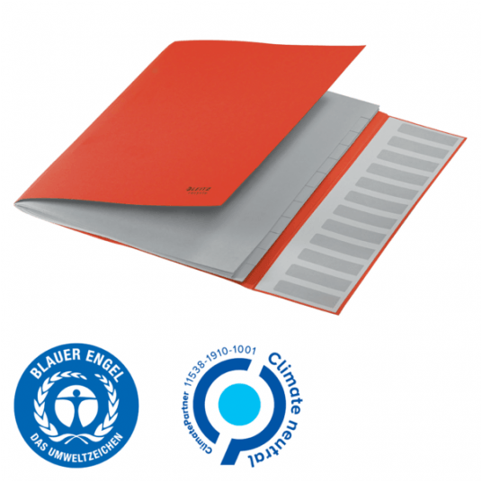 Teczka segregująca LEITZ RECYCLE A4 12 przekładek, czerwona