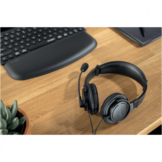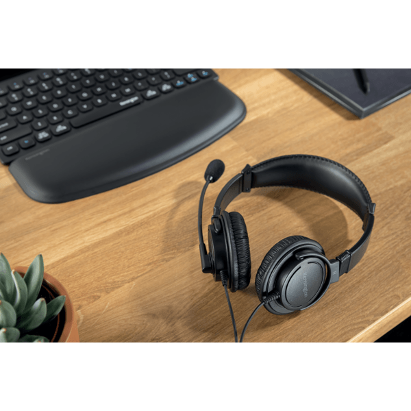 Regulowany pałąk, zaprojektowany tak, aby pasował do wszystkich grup wiekowych, jest wyściełany, a elastyczny mikrofon z wysięgnikiem można skręcać do 270°.