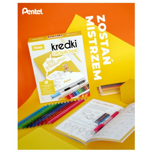 W zestawie bogato ilustrowany kurs rysowania postaci, kredki ołówkowe 24 kolory, ołówek i gumka. Kurs wyjaśnia i pokazuje, że rysowanie to sztuka, której można się nauczyć cierpliwie i dokładnie studiując kolejne kroki. Książeczka podzielona jest na 14 tematycznych rozdziałów: oczy, nos, uśmiech, twarz, głowa, uszy, włosy, emocje, ciało, ręce, nogi, tors i pośladki, ruch, ubranie. Z takim przygotowaniem i narzędziami – rysować każdy może!