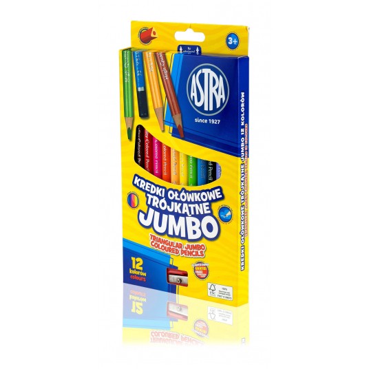 Kredki ołówkowe Jumbo trójkątne temperówka 12 kolorów