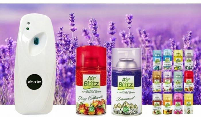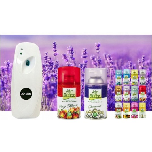 Biały z czarnym tyłem, elektroniczny, profesjonalny dozownik odświeżacz powietrza. Można go postawić lub zawiesić w wybranym pomieszczeniu. Jest prosty i wygodny w użyciu, wystarczy włożyć zapachowy wkład oraz baterie, a urządzenie będzie wypuszczać delikatny i świeży zapach w stałych odstępach czasu. Możliwe trzy nastawy czasowe rozpylania: co 7.5, 15 i 30 min.