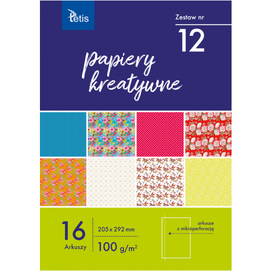 Papier kreatywny zestaw TETIS KB030 A4 16 arkuszy 100g nr 12 MIX