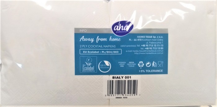 Serwetki AHA 24x24 składane 1/4 2W białe 200szt