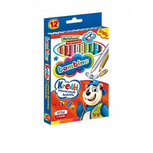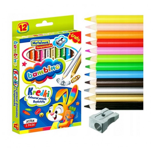 Kredki BAMBINO grube 12 kolorów + temperówka