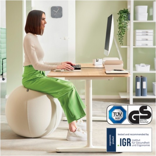Stylowa i ergonomicznie zaprojektowana piłka do ćwiczeń, która idealnie nadaje się jako dodatkowe siedzisko i utrzymuje ciało w ruchu w ciągu dnia.